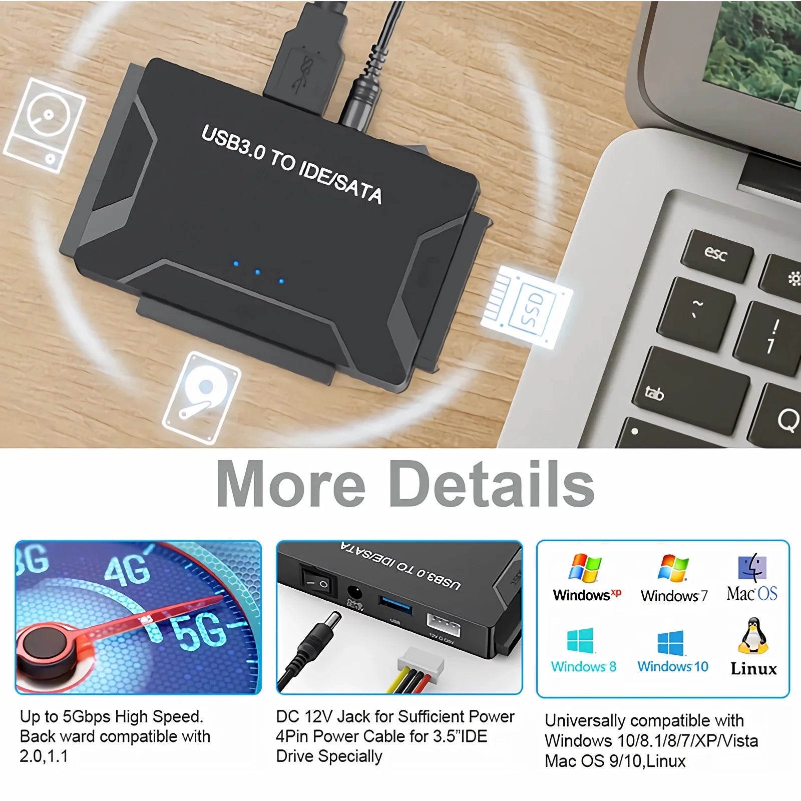 Это устройство поддерживает высокоскоростную передачу данных до 5 Гбит/с благодаря использованию USB 3.0, что позволяет быстро извлекать файлы.